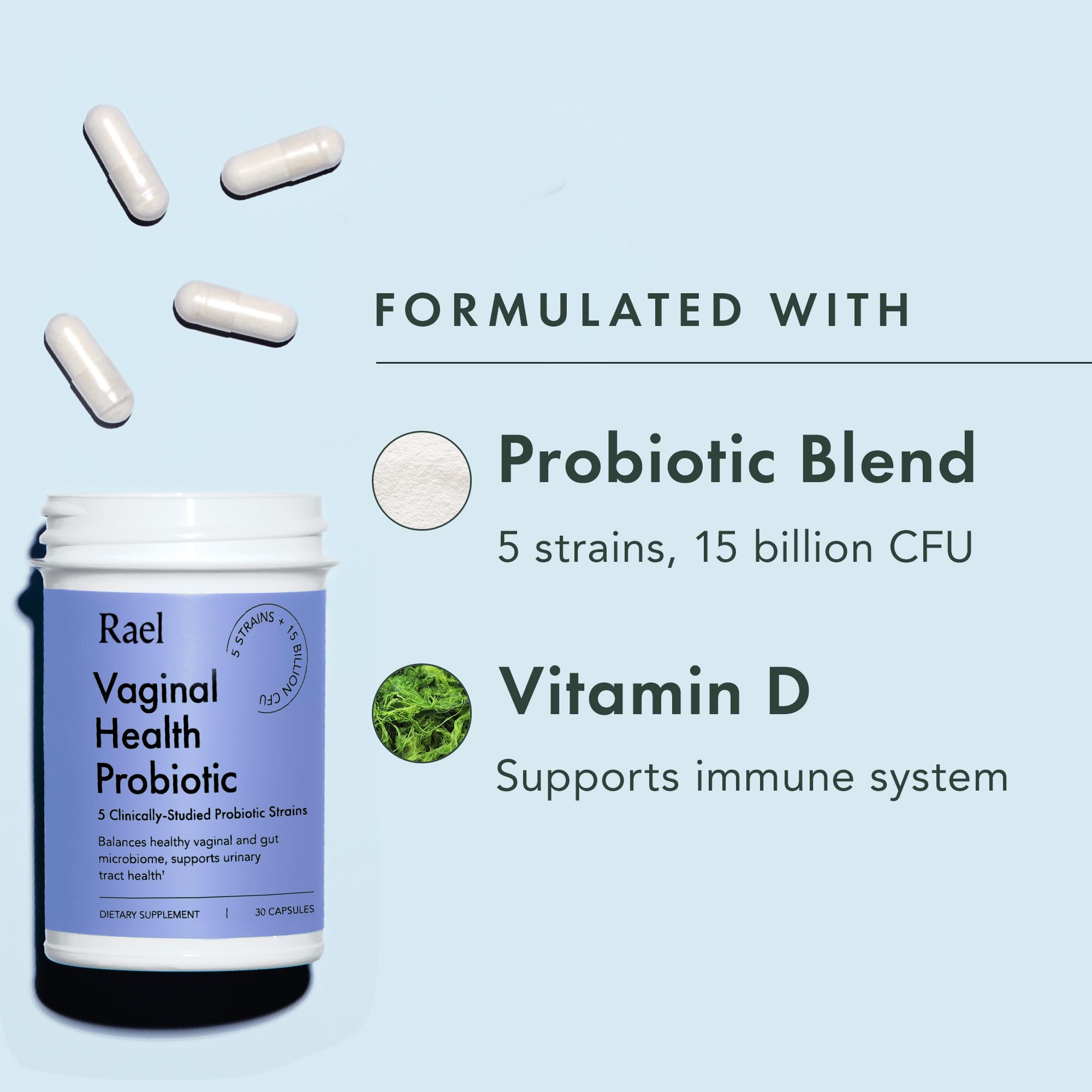 Rael Probiotics for Women - pH Balance Supplement with Prebiotics, Vaginal Immune Health (30 Servings)